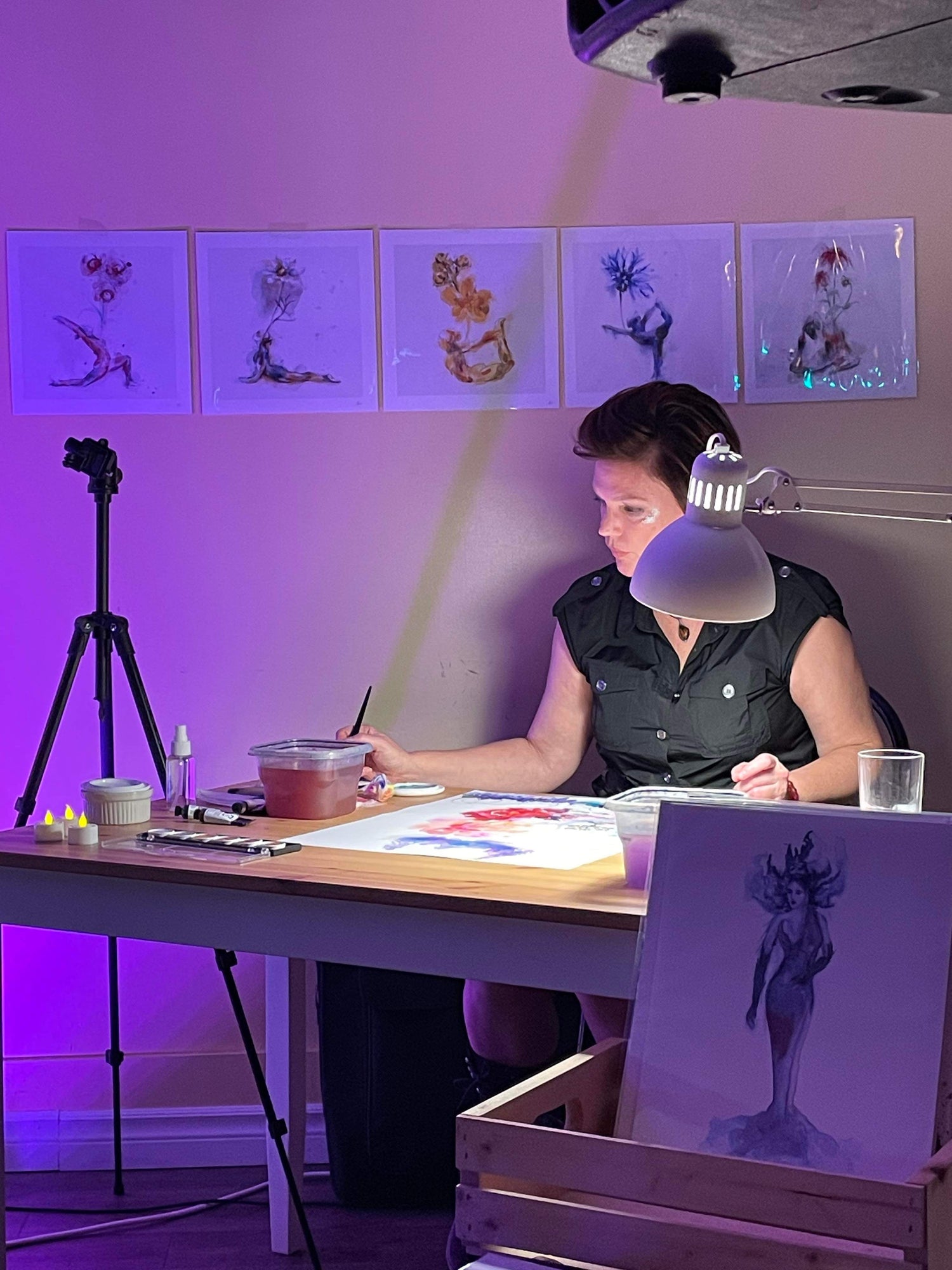 I'm Anik, a mixed media artist from Canada. My art blends feminine energy, imagination, and magic, featuring collages, textures, and high-vibration colors. Thanks for stopping by, and I hope you find a painting you love!